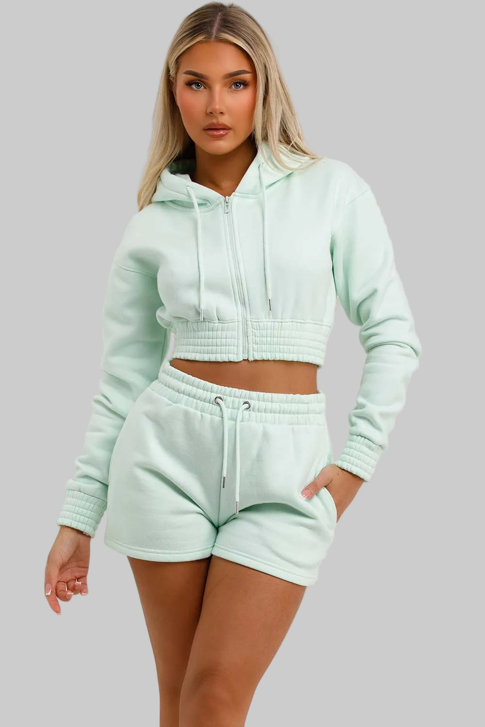 Crop Zip Hoodie & Shorts Set | Mint